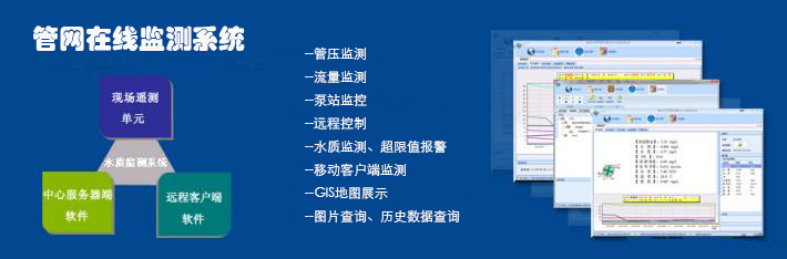 •4、利用管网在线监测软件,可以实现对管网监控数据形成曲线分析、历史数据查询、报表打印、远程监控、监测预警、调度、监管等功能。